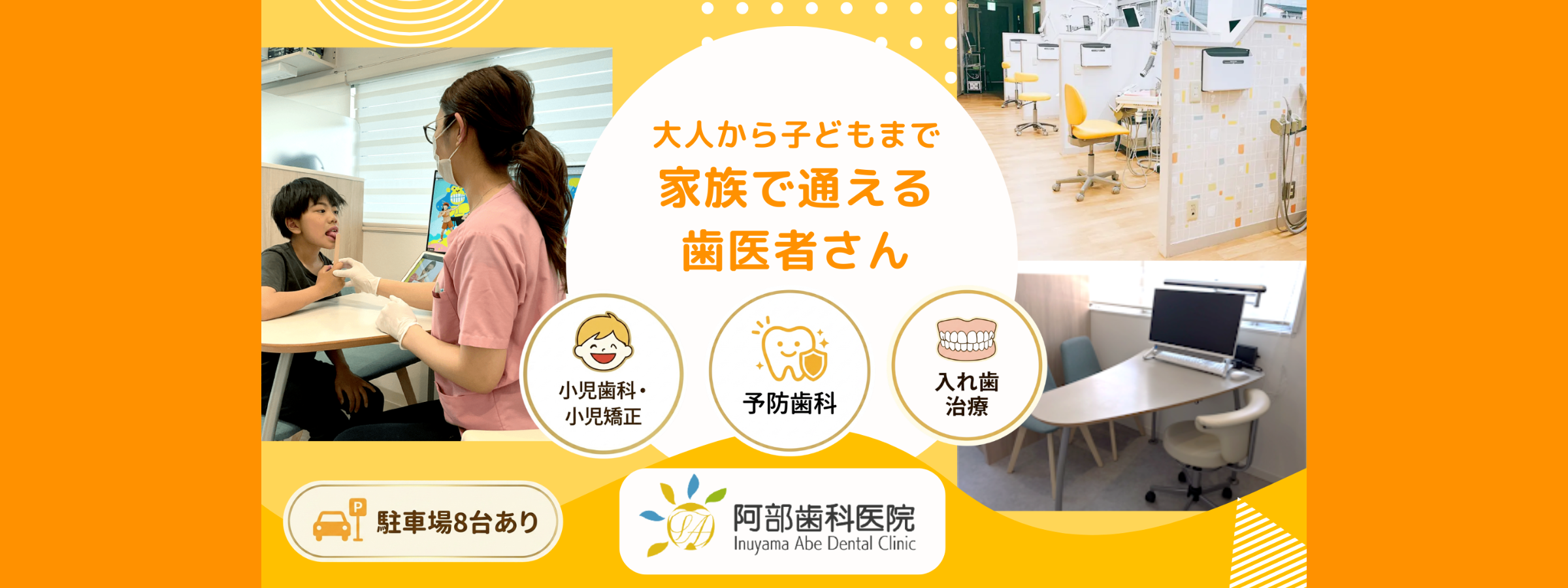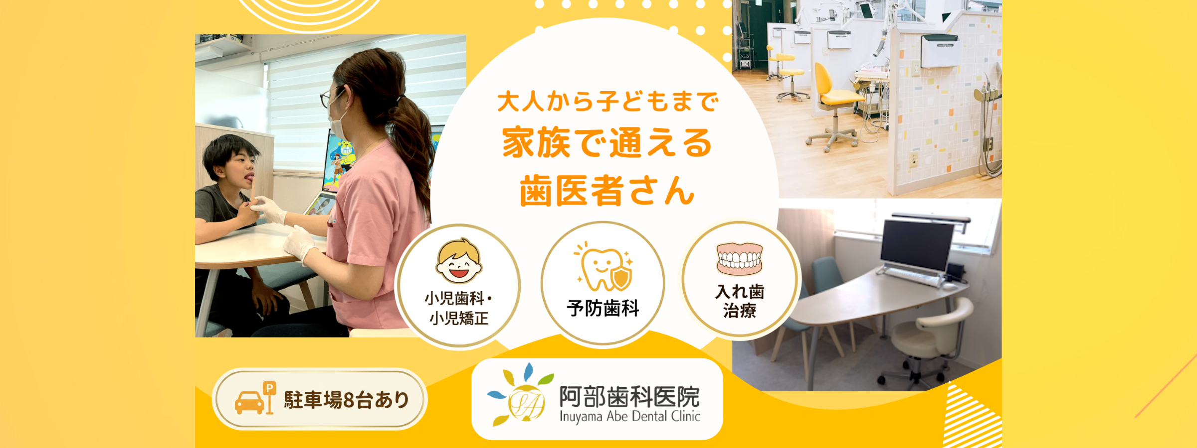 犬山市の歯医者・歯科「阿部歯科医院」は、入れ歯治療と予防歯科に力を入れ、小児矯正にも対応する歯科医院です。犬山地域で皆さまの歯の健康をサポートしています。