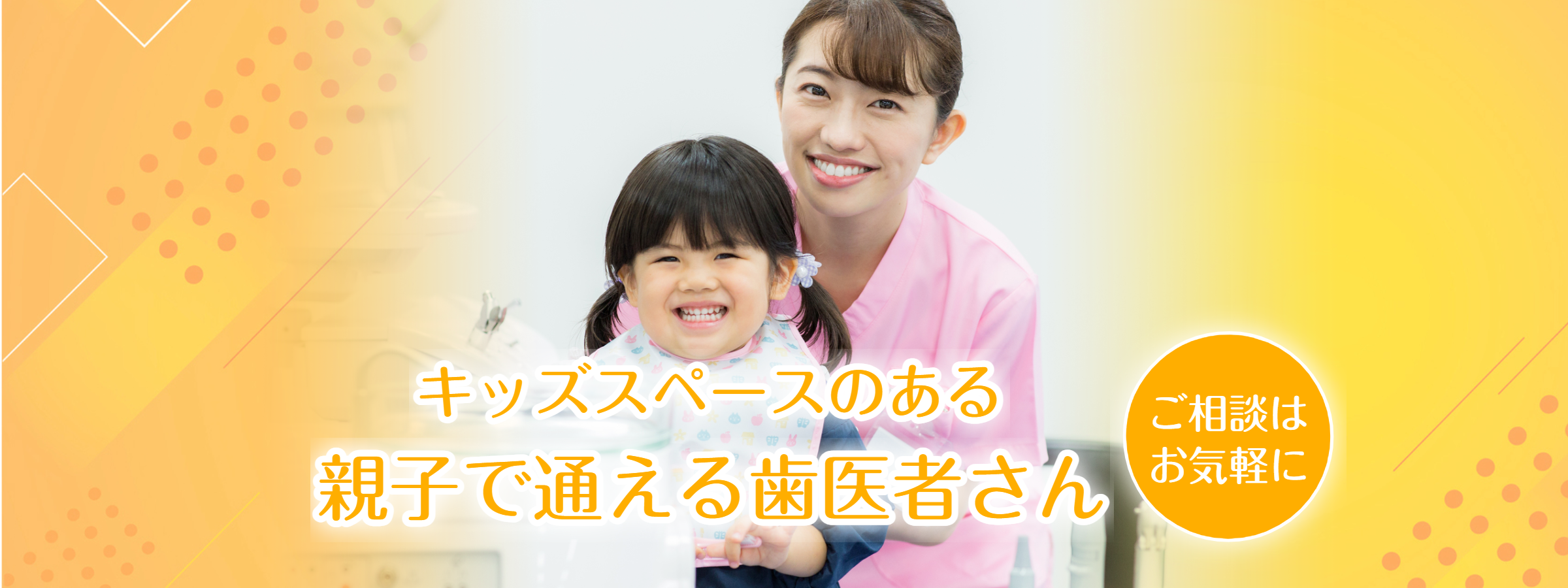 当院は、親子で通いやすい歯科医院でありたいと考えています。小さなお子さまをお連れの場合、「自分の治療を落ち着いて受けられない」という方も少なくありません。そんな親御さまにも気軽に歯科医院に通っていただき、安心して治療を受けられるよう、以下の取り組みを行っています。