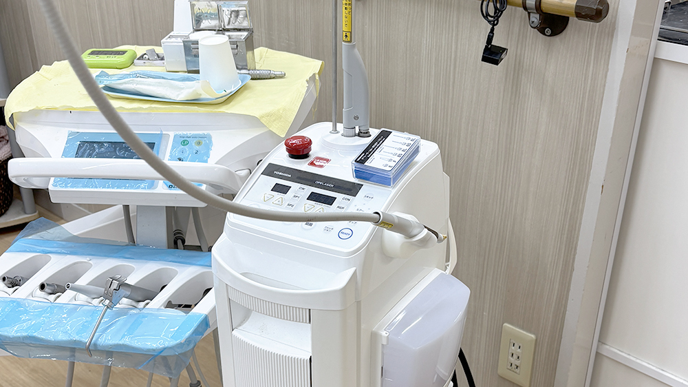 歯周病による歯茎の炎症を緩和するため、炭酸ガスレーザーを用いています。