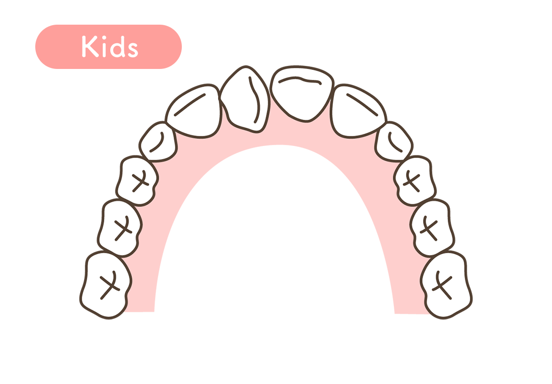 骨格が固まり切る前のこどもの矯正治療の場合、顎を拡大する矯正を行えるので、抜歯することなく矯正を行えます。
